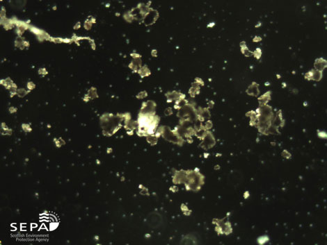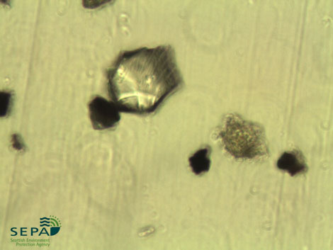 Gracias a la Agencia de Protección de Medio Ambiente de Escocia, podemos ver las micropartículas que viajan en la nube de cenizas y humo procedente del volcán bajo el glaciar Eyjafjallajokull, en Islandia y que está provocando el cierre del espacio aéreo europeo. Las micropartículas fueron recolectadas en Lerwick el Jueves 15 de Abril con un tamaño de 15 × 20 µm a 70 × 85 µm.