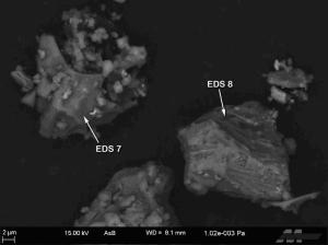 Un análisis más detallado realizado por el Instituto Macaulay mostró en líneas generales, tamaño uniformes de unas 20 micras y la forma de las partículas era angular, exhibiendo algunas estrías y otras con fracturas concoidea, típicas de materiales frágiles.