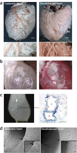 En cuanto al corazón, se repobló un corazón vacío de una rata muerta con células cardíacas de ratas recién nacidas. A los 4 días el órgano, comenzó a contraerse y a los 8 días ya latía con normalidad. En la siguiente imagen, en el lado izquierdo una imagen de un corazón de un fallecido y en el derecho, el de un corazón descelularizado.