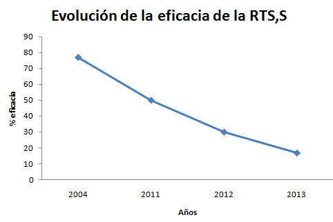 La vacuna RTS,S apoyada por la Fundación Gates y cuyo desarrollo encabeza el español Pedro Alonso, es la candidata a vacuna contra la Malaria desde hace unos 20 años. En los últimos tiempos, la esperanza parecía ser real al mostrarse buenos resultados, pero en las últimas fases de la experimentación se observa cómo no se pierde la protección a medio plazo reduciéndose la eficacia de la vacuna. ¿Fracaso de la vacuna contra la malaria?