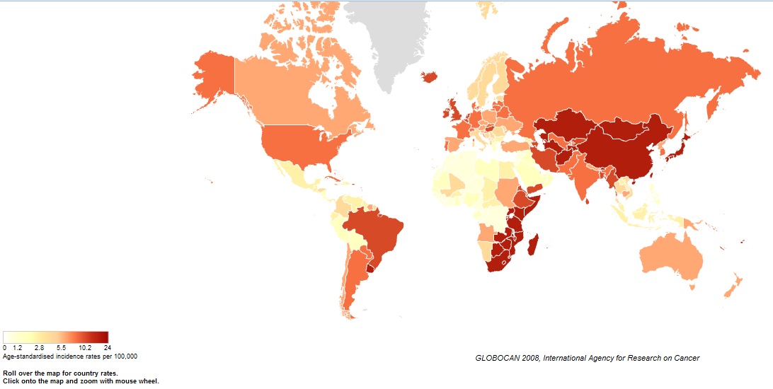 – IARC – Estimated Oesophageal Cancer Incidence Worldwide in 2008: Men