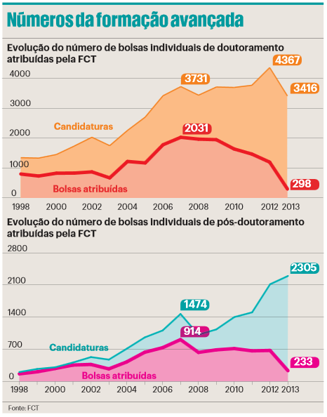 Portugal, uno de los pocos países en los que fondos en ciencia se mantenían a pesar de los duros recortes en otras áreas del Presupuesto público, ha dicho que la ciencia no podía ser menos en estos recortes a través de las FCT. Las FCT, las becas para doctoramiento y postdoctoramiento, contratos soñados por cualquier estudiante (media de 6 años de contrato)